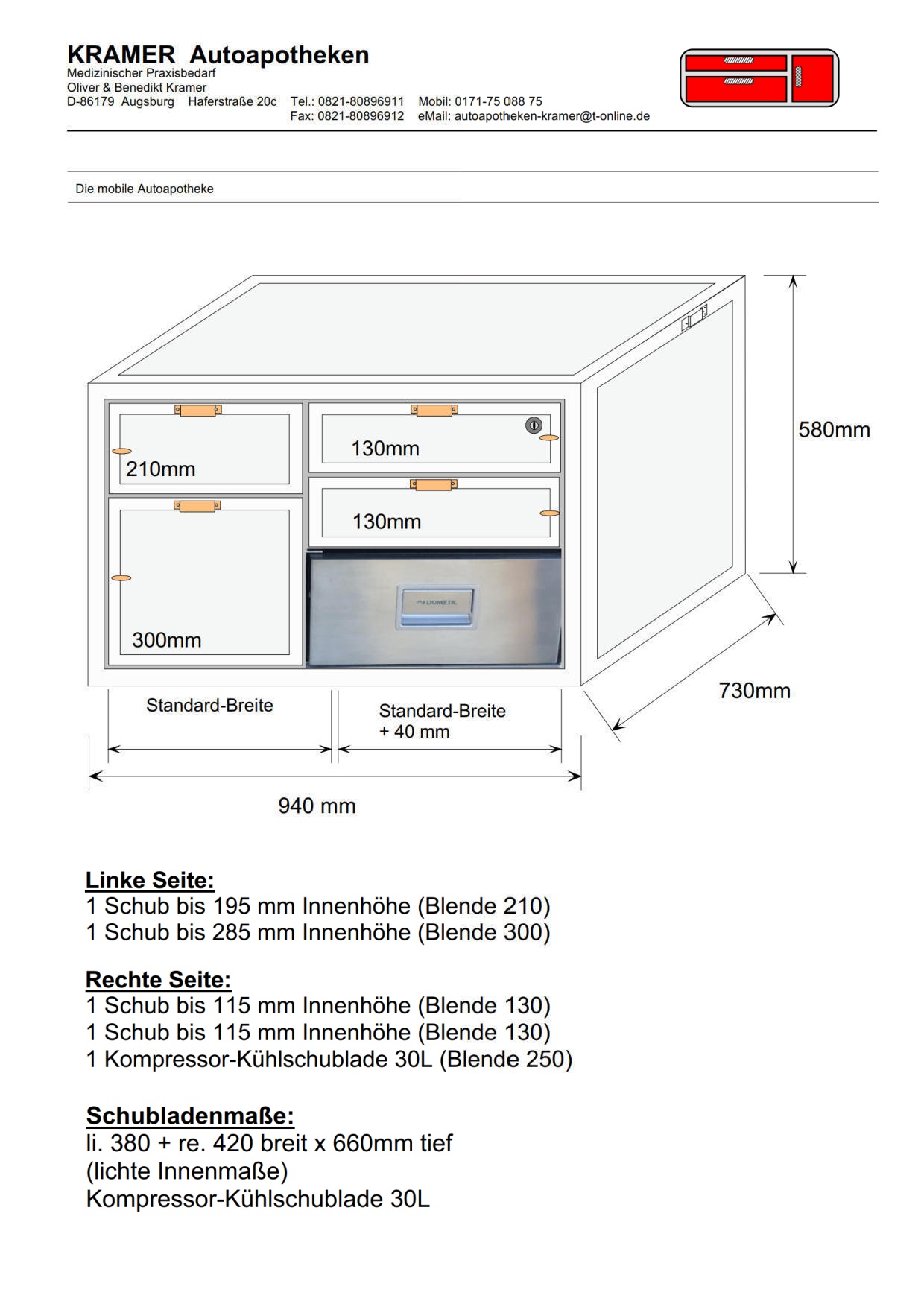 Diese Apotheke ist eigentlich keine gebrauchte, es handelt sich um einen Rückläufer. Sie war ca. 4 Wochen im Einsatz, sogar die Schutzfolien sind noch aufgebracht. Wir diese daher als Vorfüher mit Extra Rabatten anbieten. Die Apotheke hat alle gängigen Schubladenhöhen und auch eine Kompressor- Kühlschublade. Für genauere Infos, Bilder oder ein Angebot, schreiben Sie uns gerne oder rufen Sie kurz an.